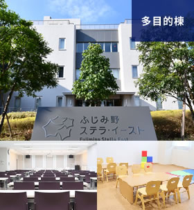 多目的棟は地上3階建てで会議室、スタジオ、和室など多目的に利用できる施設が充実しています。
