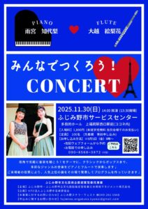 音楽面ではNPO法人ふじみ野市音楽家協会の協力を得て、地域に根差した公演作りを行います。