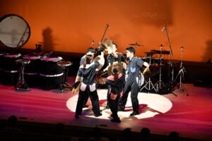 後半は運動会でよく耳にする曲を演奏しながら、組体操などのパフォーマンスをする演奏、様々なフォーメーションや体勢で行われるアクロバティックな演奏、打楽器のリズムと照明演出の合わさった演奏など、PPPの世界に引き込まれる楽しいパフォーマンスがたくさん行われました。観客参加コーナーでは、コールアンドレスポンスや観客全員でダンスを踊り、会場に一体感が生まれました。