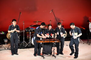 前半は様々な打楽器を移動しながらの演奏、木琴1台を3名で演奏、テレビでも放映された「ドレミパイプ」を使った演奏など、驚きのパフォーマンスがたくさん行われました。観客参加コーナーでは子ども達による、「ドレミパイプ」を使用した『ドレミの歌』の演奏が行われました。1人1音担当し、リズムよく一生懸命に演奏する子どもたちのかわいらしい演奏に会場全体があたたかい空気に包まれました。子ども達もステージに上がって演奏するという貴重な体験をすることができました。